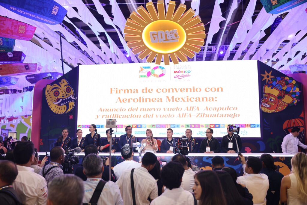 En un primer momento, la jefa del Ejecutivo estatal firmó el convenio de colaboración con la aerolínea Mexicana, en donde se anunció que a partir del mes de junio, se contará con el vuelo Aeropuerto Internacional Felipe Ángeles (AIFA)-Acapulco; en este contexto también se informó la ratificación del vuelo AIFA-Zihuatanejo.